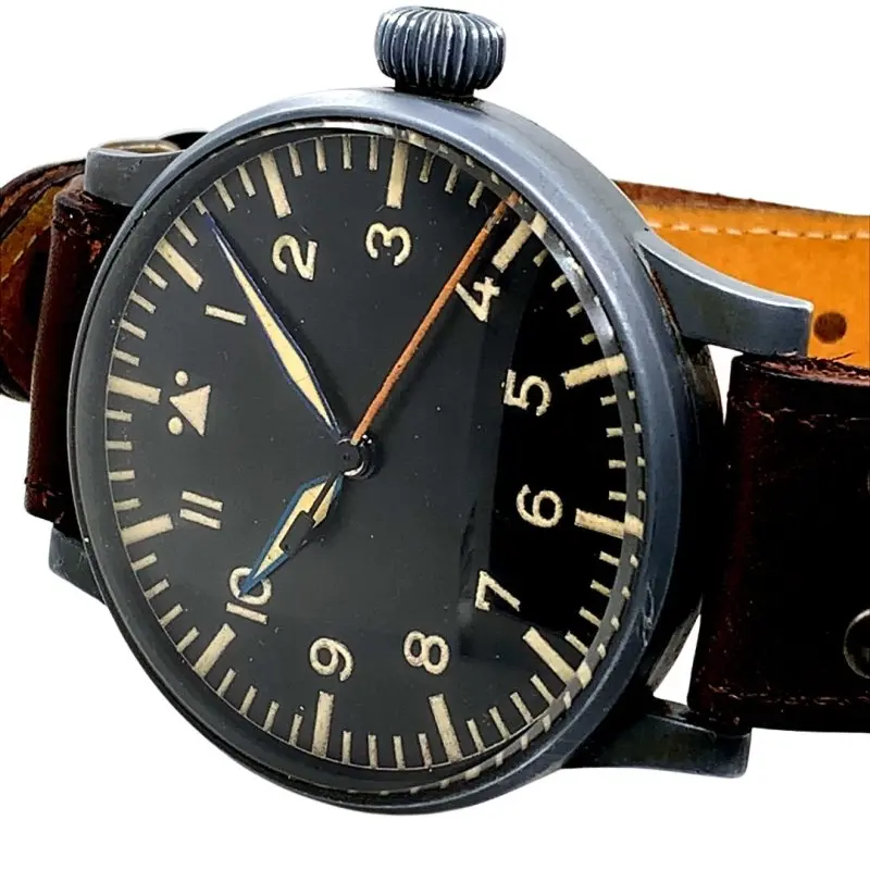 Große, frühe Fliegerbeobachtungsuhr der deutschen Luftwaffe mit indirekter Zentralsekunde und Sekundenstopvorrichtung